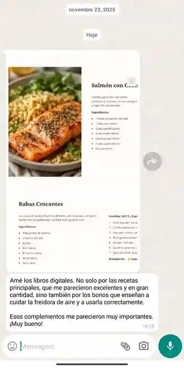 Recordá que tu acceso es de por vida, y además vamos añadiendo nuevas recetas, tips de cocción y mejoras pensadas para ayudarte a aprovechar al máximo tu Airfryer y cocinar de forma más práctica, rica y saludable..